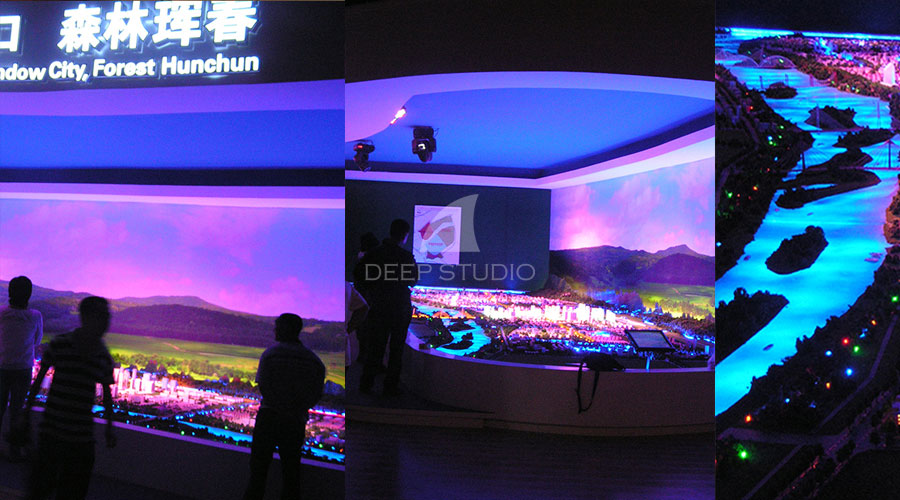 彩色燈光的應用也是彩色控制的主要方面,不同的色光可將空間加以區(qū)別。冷暖光源的配合使用還可以給人清新明快的感覺,如采用冷光源作為環(huán)境光,采用暖色光來照射主要的展示物。鄭州展廳設計使用時要注意,避免光源影響到展示物本身的色彩。